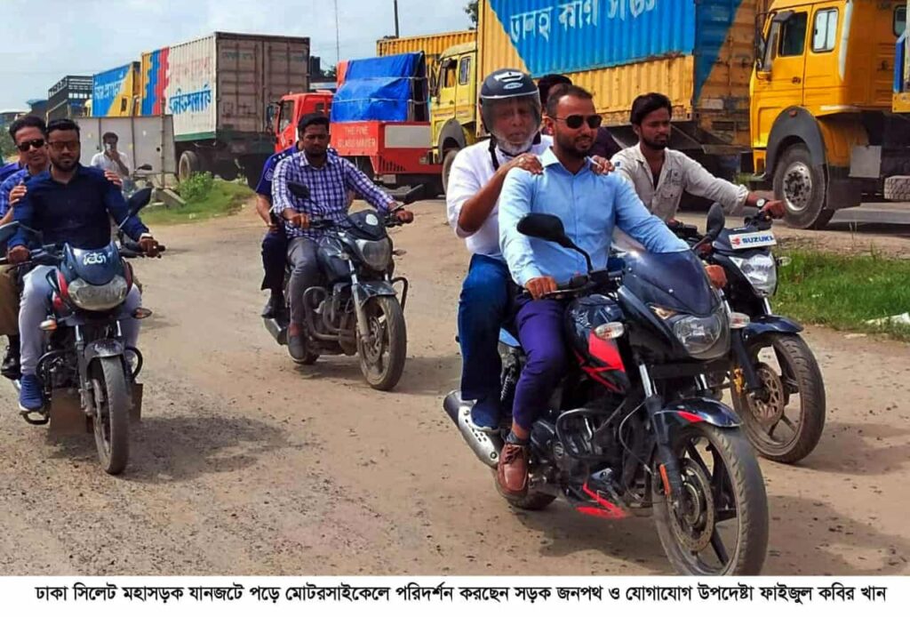 সকালে উজানভাটি হোটেল থেকে গাড়িবহর নিয়ে রওনা দিলে কিছুক্ষণের মধ্যেই তিনি আশুগঞ্জের অংশে ভয়াবহ যানজটে আটকে পড়েন। দীর্ঘ সময় আটকে থাকার পর বিকল্প ব্যবস্থা হিসেবে মোটরসাইকেলে চড়ে তিনি অবশেষে ব্রাহ্মণবাড়িয়া বিশ্বরোড মোড়ে পৌঁছান এবং সেখানেই নাজুক অবস্থায় মহাসড়ক পরিদর্শন সম্পন্ন করেন।