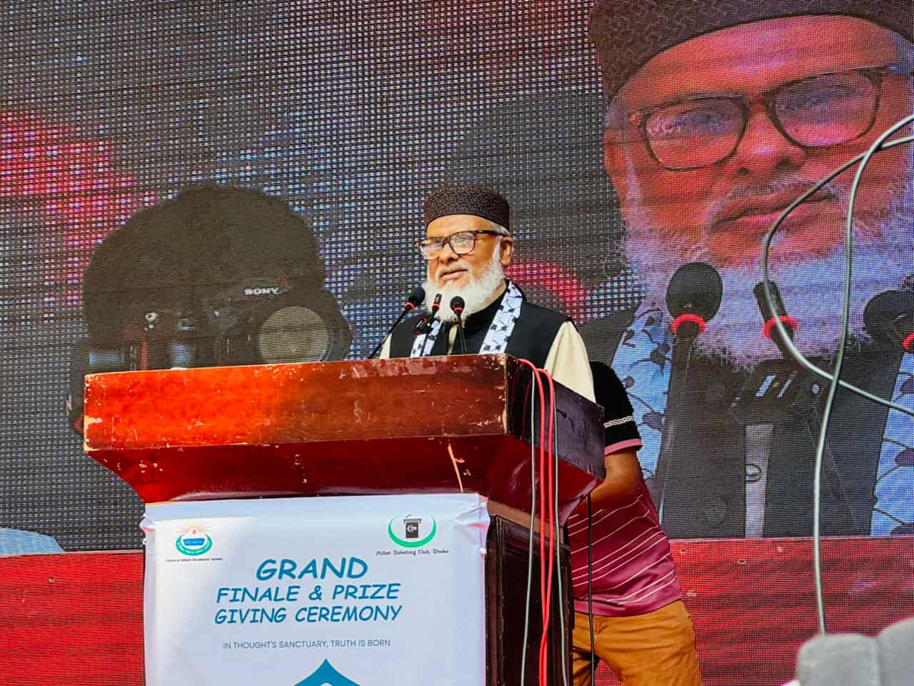 মঙ্গলবার সকালে রাজধানীর যাত্রাবাড়ীতে তামীরুল মিল্লাত কামিল মাদরাসা প্রাঙ্গণে প্রতিষ্ঠানটির ছাত্র সংসদের আয়োজনে অনুষ্ঠিত “১ম এমডিসি জাতীয় স্কুল, কলেজ ও আন্তঃমাদরাসা বিতর্ক প্রতিযোগিতা ২০২৫”-এর গ্র্যান্ড ফিনালে ও পুরস্কার বিতরণ অনুষ্ঠানে প্রধান অতিথির বক্তব্যে তিনি এসব কথা বলেন।