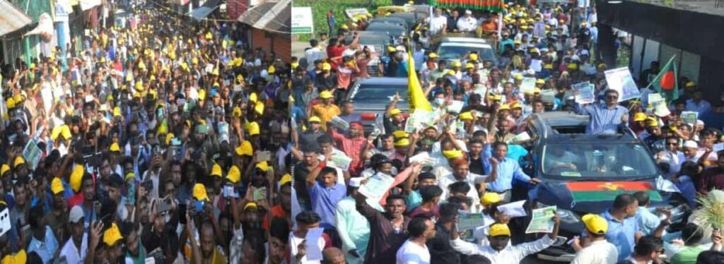সকাল থেকেই উপজেলার বিভিন্ন ইউনিয়ন থেকে মিছিল সহকারে নেতাকর্মীরা দোয়ারাবাজার হাসপাতালে সংলগ্ন মাঠে জড়ো হন। দুপুরের পর বিশাল মিছিল, লিফলেট বিতরণ ও গণসমাবেশে এলাকা জনসমুদ্রে পরিণত হয়।