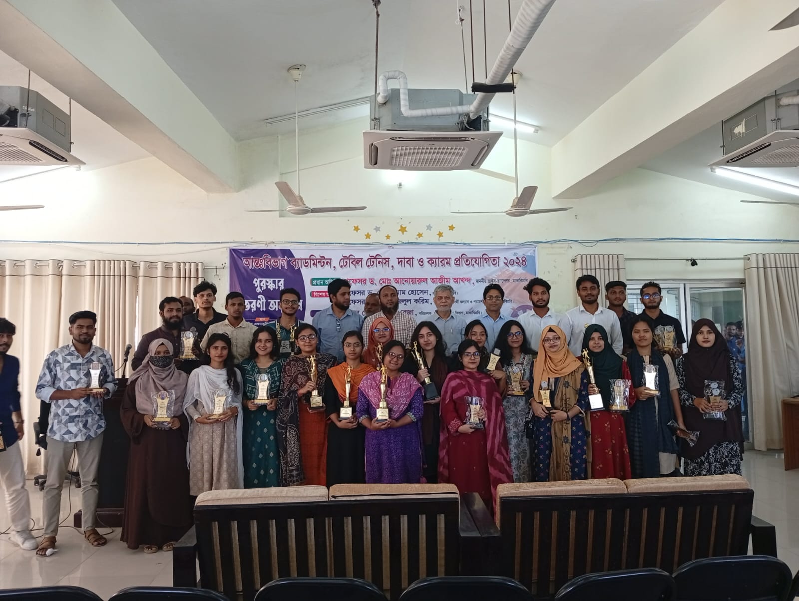 মাওলানা ভাসানী বিজ্ঞান ও প্রযুক্তি বিশ্ববিদ্যালয়ে (মাভাবিপ্রবি) আন্তঃবিভাগীয় ব্যাডমিন্টন, টেবিল টেনিস, দাবা ও ক্যারম প্রতিযোগিতা ২০২৪-এর পুরস্কার বিতরণী অনুষ্ঠান অনুষ্ঠিত হয়েছে।