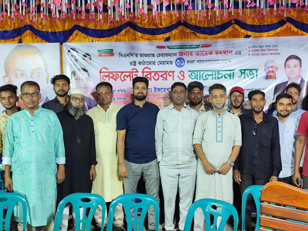বদলগাছীতে বিএনপির ৩১ দফা বাস্তবায়নে লিফলেট বিতরণ ও আলোচনা সভা অনুষ্ঠিত