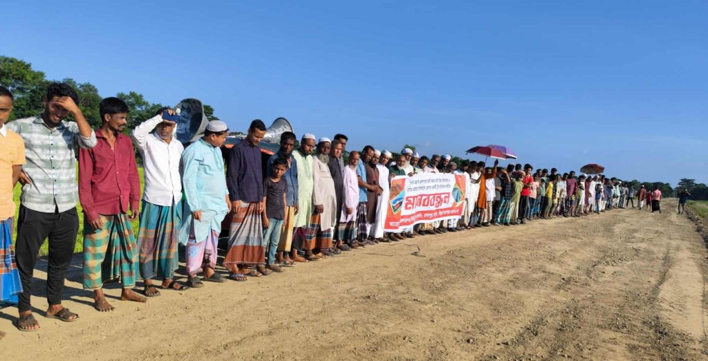 ছাতকে বন্যা দুর্ভোগ এড়াতে নির্মাণাধীন রেলপথে সেতুর দাবিতে মানববন্ধন