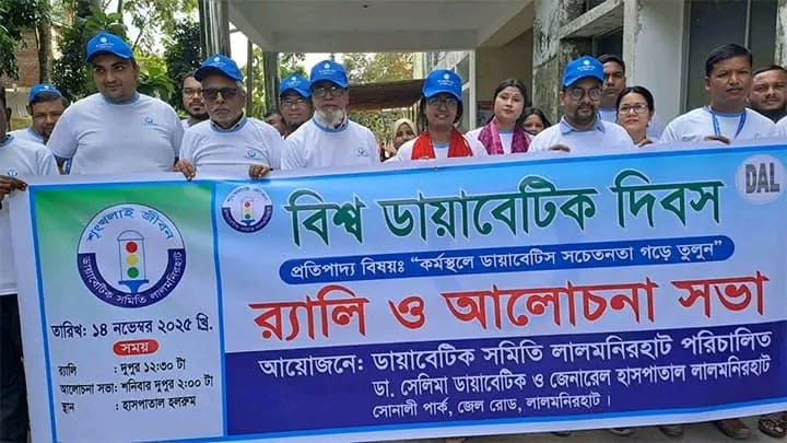 লালমনিরহাটে র্যালি ও আলোচনা সভায় বিশ্ব ডায়াবেটিস দিবস পালিত