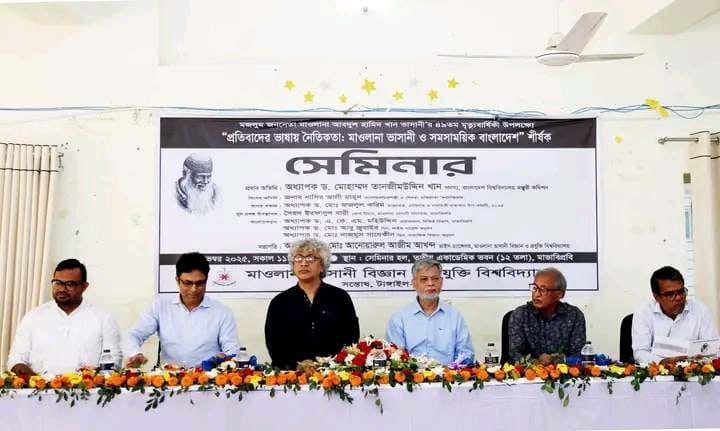 মজলুম জননেতা মাওলানা আবদুল হামিদ খান ভাসানীর ৪৯তম মৃত্যুবার্ষিকী উপলক্ষে মাওলানা ভাসানী বিজ্ঞান ও প্রযুক্তি বিশ্ববিদ্যালয়ে অনুষ্ঠিত হলো “প্রতিবাদের ভাষায় নৈতিকতা: মাওলানা ভাসানী ও সমসাময়িক বাংলাদেশ” শীর্ষক সেমিনার। রোববার, ১৬ নভেম্বর ২০২৫ দুপুরে বিশ্ববিদ্যালয়ের ১২-তলা একাডেমিক ভবনের সেমিনার হলে এ আয়োজন অনুষ্ঠিত হয়।