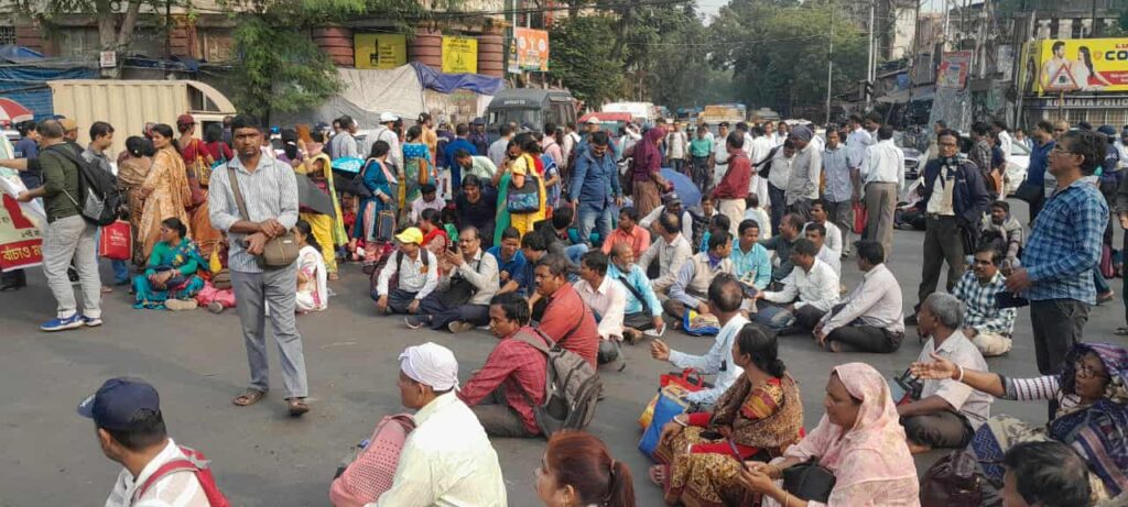 বেতন বৃদ্ধি ও স্থায়ী নিয়োগের দাবিতে সারাদেশের পার্শ্ব শিক্ষকদের বিক্ষোভে উত্তাল ধর্মতলা