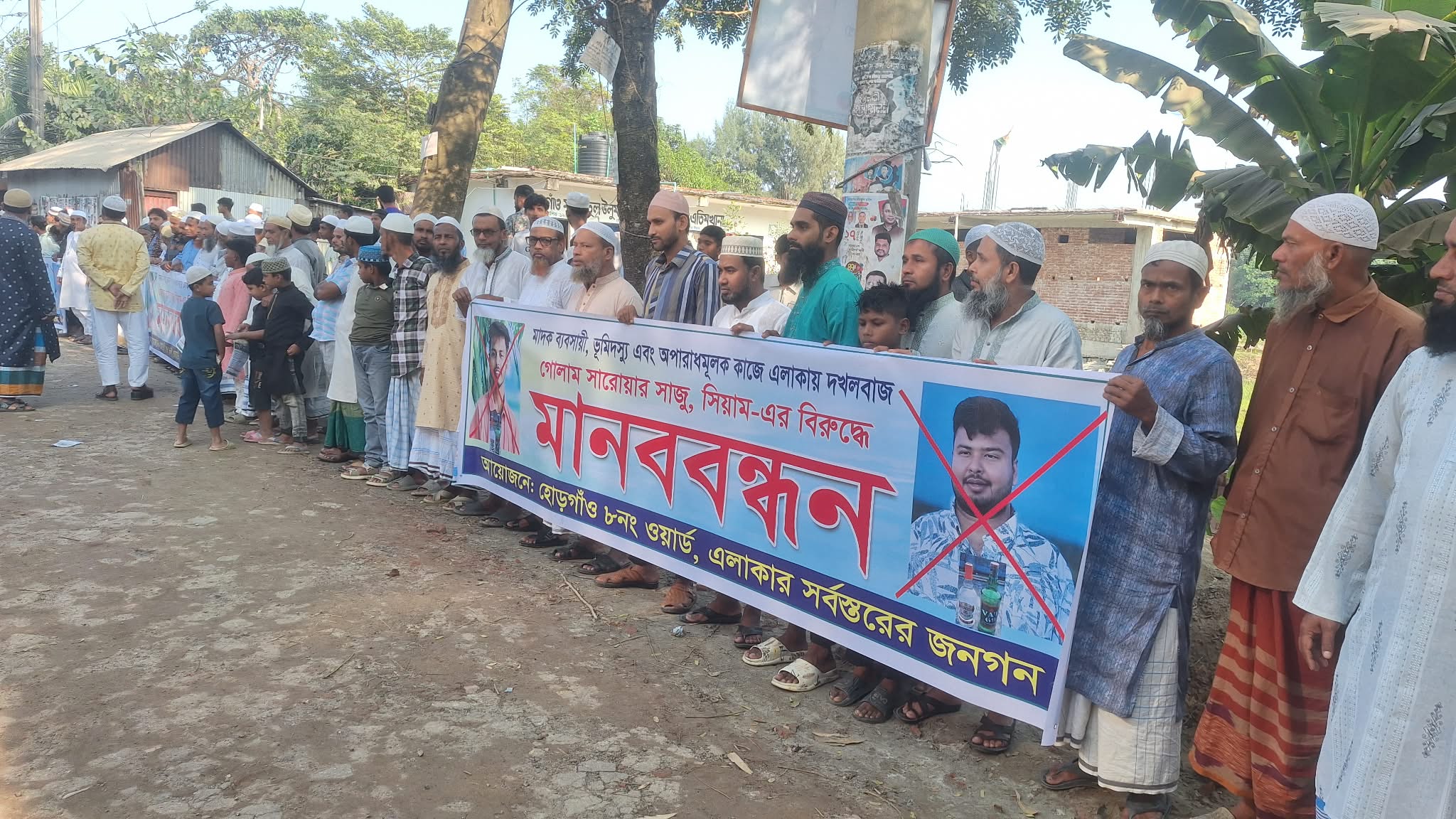 মানববন্ধনে বক্তারা বলেন, মানুষ শান্তিতে বসবাস করতে চায়, কিন্তু কয়েকজন অপরাধী চক্রের কারণে পুরো গ্রাম বর্তমানে জিম্মি হয়ে পড়েছে। সাধারণ মানুষ ভয়-ভীতি নিয়ে রাত কাটাচ্ছে। বক্তারা দাবি জানান—দ্রুত প্রশাসনের হস্তক্ষেপ, মাদক ব্যবসায়ীদের গ্রেপ্তার ও দখল করা বসতঘর উদ্ধারের পদক্ষেপ গ্রহণ করা প্রয়োজন।