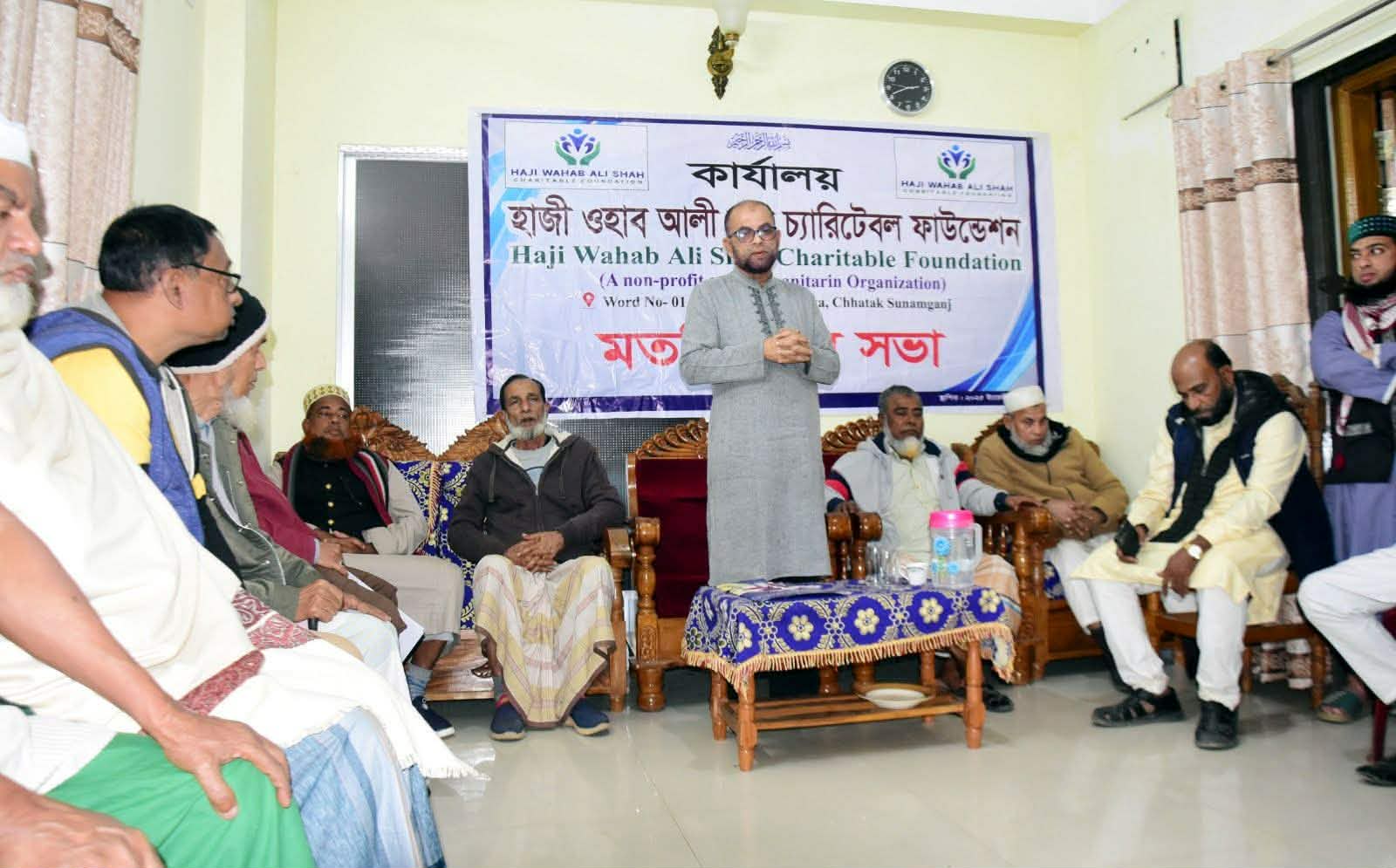ছাতক পৌরসভার ফকিরটিলা গ্রামে সমাজসেবামূলক একটি নতুন অধ্যায়ের সূচনা হলো। সম্প্রতি স্থানীয় গুণী ব্যক্তি হাজী ওয়াহাব আলী সাহেবের বাসভবনে অনুষ্ঠিত হয়েছে “হাজী ওয়াহাব আলী শাহ চ্যারিটেবল ফাউন্ডেশন”-এর আনুষ্ঠানিক আত্মপ্রকাশ। এতে গ্রামবাসী, মুরব্বি, যুবসমাজ এবং বিভিন্ন সম্প্রদায়ের মানুষ উপস্থিত ছিলেন।