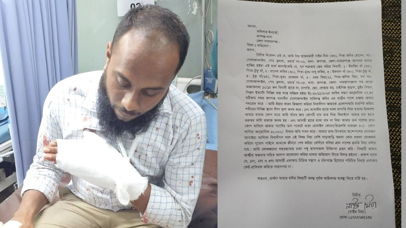 নারায়ণগঞ্জের রূপগঞ্জ উপজেলার গোলাকান্দাইল এলাকায় পূর্ব দ্বন্দ্বকে কেন্দ্র করে একদল অস্ত্রধারীর হামলার অভিযোগ উঠেছে। স্থানীয় যুবক নাইম মিয়া লিখিত অভিযোগে একটি সংঘবদ্ধ অপরাধীচক্রকে দায়ী করেছেন। অভিযোগ অনুযায়ী, ইয়াছিন খাঁ নেতৃত্বাধীন সন্ত্রাসী গ্রুপ দীর্ঘদিন ধরে এলাকায় আধিপত্য বিস্তারের নামে সন্ত্রাস, ভয়ভীতি ও চাঁদাবাজির ঘটনা ঘটিয়ে আসছে।
