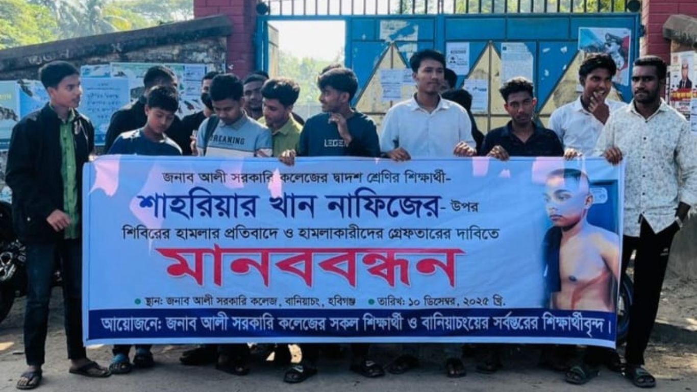 বানিয়াচংয়ে শিক্ষার্থীর উপর হামলার প্রতিবাদে মানববন্ধন