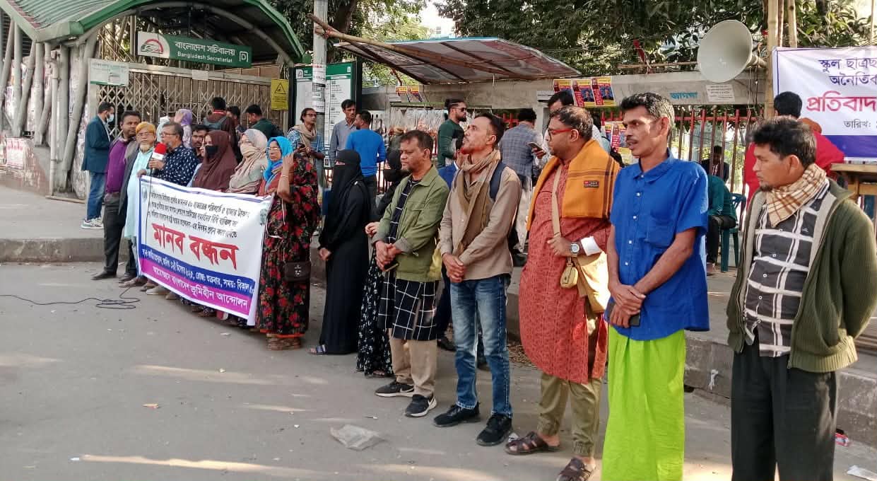মানববন্ধনে অংশগ্রহণকারীরা জানান, সাম্প্রতিক রাজনৈতিক পরিবর্তনের পরেও সাধারণ ও প্রান্তিক জনগোষ্ঠীর জীবনে কাঙ্ক্ষিত সংস্কার বাস্তবায়িত হয়নি। কৃষক, শ্রমিক ও ভূমিহীন জনগণ দেশের অর্থনীতিতে গুরুত্বপূর্ণ ভূমিকা রাখলেও তারা ন্যায্য অধিকার ও ন্যায্যমূল্য থেকে বঞ্চিত হচ্ছেন। বিশেষ করে কৃষকরা ফসল উৎপাদন করেও বাজারে উপযুক্ত দাম না পাওয়ার অভিযোগ তুলে ধরেন।