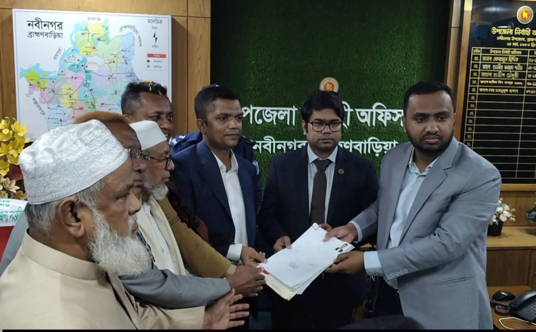 সোমবার (২৯ ডিসেম্বর) দুপুর আনুমানিক ১টা ৩০ মিনিটে নবীনগর উপজেলা পরিষদ চত্বরে উৎসবমুখর পরিবেশে তিনি মনোনয়নপত্র জমা দেন। উপজেলা নির্বাহী কর্মকর্তা ও সহকারী রিটার্নিং কর্মকর্তা মোঃ মাহমুদুল হাসান এবং উপজেলা নির্বাচন অফিসার স্বপন কুমার ভৌমিকের কাছে প্রয়োজনীয় কাগজপত্র জমা দিয়ে মনোনয়ন দাখিলের প্রক্রিয়া সম্পন্ন করেন তিনি।