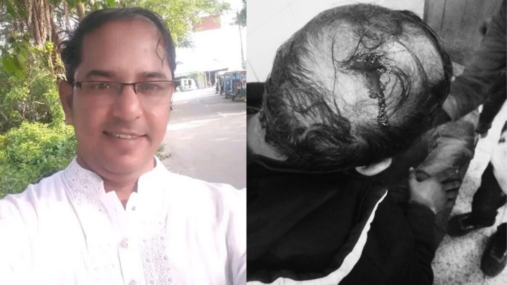 হামলাকারীরা বিভিন্ন ধরনের দেশীয় অস্ত্র ব্যবহার করে তাকে আঘাত করে। হামলায় তার মাথার মধ্যে চাপাতি দিয়ে কোপ মারা হয়, বাম পা ও পিঠে লোহার রডে আঘাত করা হয় এবং রাম দার দিয়ে শরীরে বারি মারা হয়। এই হামলায় তার শরীরে গুরুতর রক্তাক্ত জখম হয়েছে।