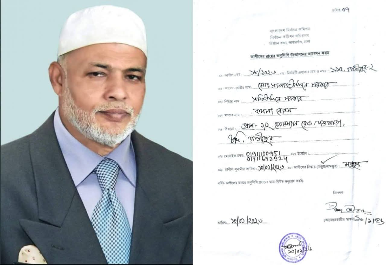 ত্রয়োদশ জাতীয় সংসদ নির্বাচনকে সামনে রেখে গাজীপুর–২ (সদর–টঙ্গী) আসনে নির্বাচনী তৎপরতা নতুন গতি পেয়েছে। স্বতন্ত্র সংসদ সদস্য প্রার্থী হিসেবে দাখিল করা মনোনয়নপত্র আপিল শুনানিতে বৈধ ঘোষণা হওয়ায় সন্তোষ ও কৃতজ্ঞতা প্রকাশ করেছেন বাংলাদেশ জাতীয়তাবাদী দল (বিএনপি) শ্রমিকদল কেন্দ্রীয় কমিটির কার্যকরী সভাপতি এবং গাজীপুর মহানগর বিএনপির সাবেক আহ্বায়ক আলহাজ্ব সালাহউদ্দিন সরকার। এ সিদ্ধান্তের ফলে আসন্ন নির্বাচনে গাজীপুর–২ আসনে তার অংশগ্রহণ নিশ্চিত হলো, যা রাজনৈতিক অঙ্গনে আলোচনার জন্ম দিয়েছে।