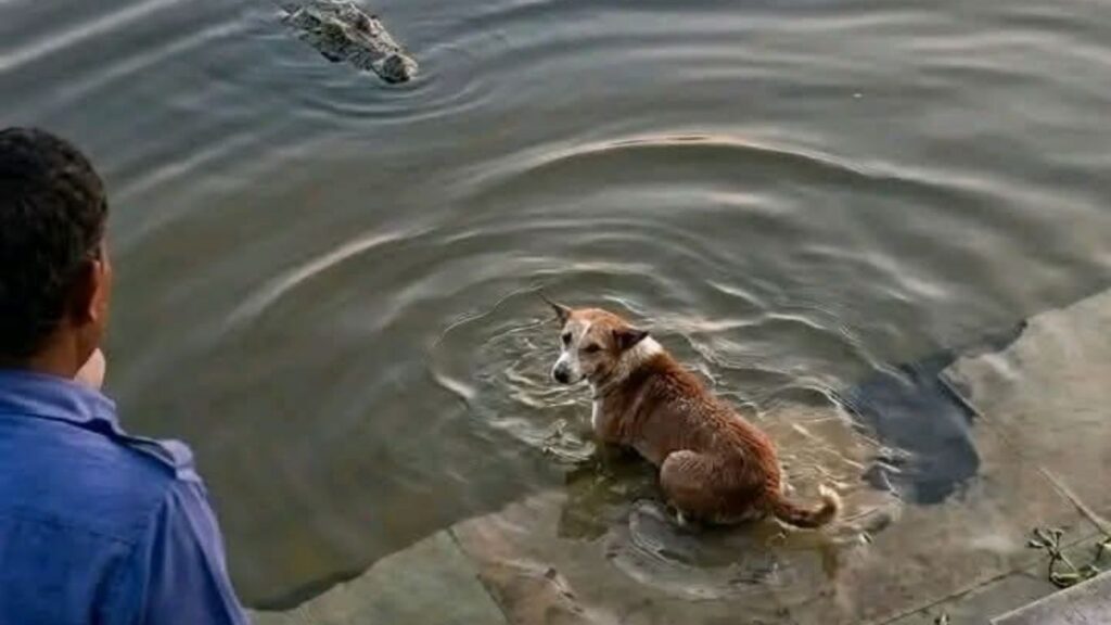 ভিডিওতে দেখা যায়, কুকুরটি প্রাণ বাঁচানোর জন্য বারবার পানির উপর উঠতে চেষ্টা করছে। কিন্তু তার পা বাঁধা ছিল বলে ধারণা করা হচ্ছে, যার কারণে সে ঠিকভাবে নড়াচড়া করতে পারছিল না। এ সময় আশেপাশে থাকা বহু মানুষ পুরো ঘটনাটি মোবাইলে ধারণ করছিলেন, কিন্তু কেউ এগিয়ে এসে প্রাণীটিকে বাঁচানোর চেষ্টা করেননি। “কুমিরের সামনে কুকুর” ফেলে দেওয়ার এমন নির্মম আচরণকে অনেকেই অমানবিক ও নিন্দনীয় বলে আখ্যা দিয়েছেন।