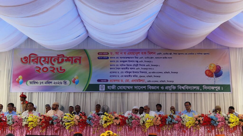 হাজী মোহাম্মদ দানেশ বিজ্ঞান ও প্রযুক্তি বিশ্ববিদ্যালয়ে (হাবিপ্রবি) অনুষ্ঠিত হাবিপ্রবি ওরিয়েন্টেশন ২০২৬ অনুষ্ঠানে প্রধান অতিথির বক্তব্যে শিক্ষামন্ত্রী ড. আ ন ম এহসানুল হক মিলন বলেন, আজকের শিক্ষার্থীরাই আগামীর বাংলাদেশ গড়ার মূল কারিগর। তিনি শিক্ষা ব্যবস্থায় গুণগত পরিবর্তনের প্রয়োজনীয়তার কথা উল্লেখ করেন এবং বলেন, শুধু অবকাঠামো নয়, মানসম্মত শিক্ষা নিশ্চিত করাই এখন মূল লক্ষ্য হওয়া উচিত। এই হাবিপ্রবি ওরিয়েন্টেশন অনুষ্ঠানে তিনি শিক্ষার্থীদের দক্ষতা উন্নয়ন ও গবেষণার ওপর গুরুত্ব দেন।