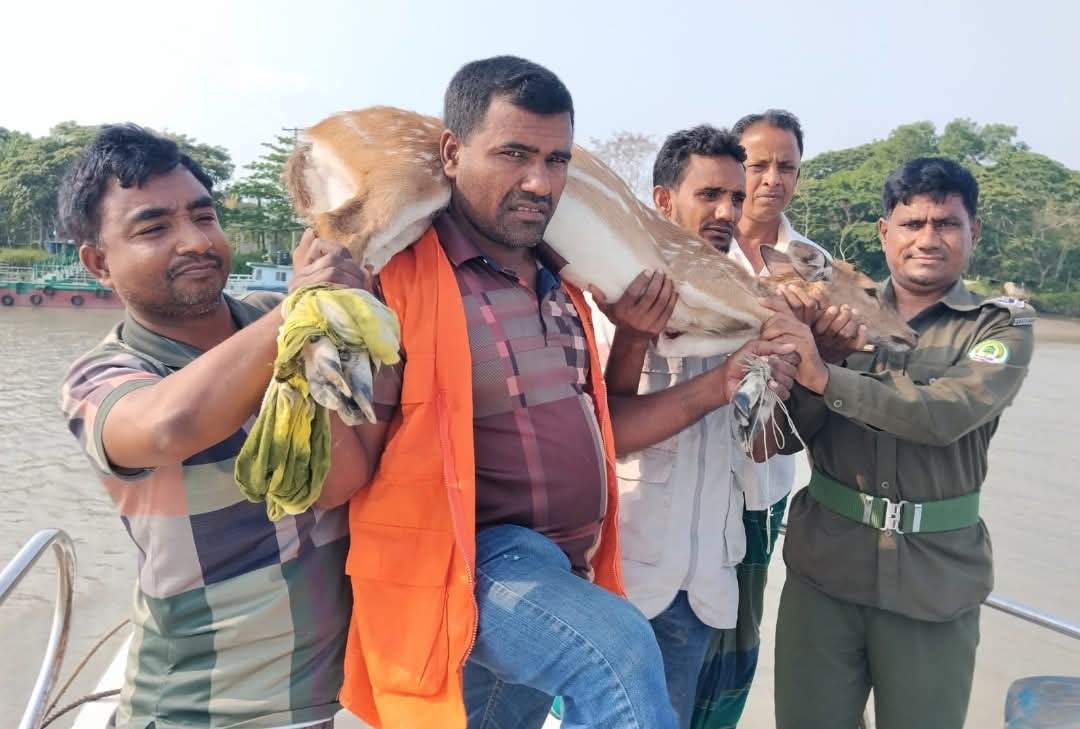 বাগেরহাটের শরণখোলা উপজেলায় সুন্দরবনসংলগ্ন এলাকায় একটি চিত্রা হরিণ বাঘের তাড়া খেয়ে লোকালয়ে চলে আসে। স্থানীয়রা বিষয়টি টের পেয়ে দ্রুত বন বিভাগ ও বন্যপ্রাণী উদ্ধারকারী দলের সঙ্গে যোগাযোগ করে। পরে ওয়াইল্ড টিম, ভিলেজ টাইগার রেসপন্স টিম (ভিটিআরটি) এবং স্থানীয়দের যৌথ প্রচেষ্টায় হরিণটি নিরাপদে উদ্ধার করা হয়। প্রাথমিকভাবে হরিণটি সুস্থ অবস্থায় থাকলেও আতঙ্কিত ছিল বলে জানিয়েছেন সংশ্লিষ্টরা। উদ্ধার অভিযানের পুরো সময়জুড়ে এলাকায় উৎসুক মানুষের ভিড় লক্ষ্য করা যায়।
