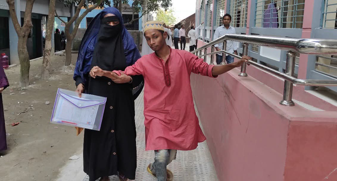 পরীক্ষা কেন্দ্রের সচিব ও অধ্যক্ষ রুহুল আমিন জানান, এই প্রতিবন্ধী শিক্ষার্থী অতিরিক্ত সময় পাওয়ার সুযোগ থাকলেও সেটি গ্রহণ করেনি। মাদ্রাসা কর্তৃপক্ষও এ বিষয়ে কোনো আবেদন করেনি। তবুও সে অন্য শিক্ষার্থীদের মতোই স্বাভাবিকভাবে পরীক্ষা দিয়ে যাচ্ছে, যা তার আত্মবিশ্বাস ও সক্ষমতার পরিচায়ক।