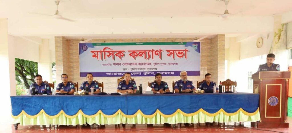 সুনামগঞ্জ জেলা পুলিশের উদ্যোগে মাসিক কল্যাণ সভা ও অপরাধ পর্যালোচনা সভা অনুষ্ঠিত হয়েছে। আজ শনিবার (১৩ সেপ্টেম্বর) সকাল ১০টায় জেলা পুলিশ লাইন্স মিলনায়তনে এ সভার আয়োজন করা হয়। এতে সভাপতিত্ব করেন পুলিশ সুপার তোফায়েল আহাম্মেদ এবং সঞ্চালনা করেন অতিরিক্ত পুলিশ সুপার (ডিএসবি) জাকির হোসাইন। সভায় পুলিশ সদস্যরা তাদের সমস্যা, প্রয়োজনীয়তা ও সুপারিশ তুলে ধরেন। পুলিশ সুপার মনোযোগ সহকারে তা শুনেন এবং দ্রুত সমাধানের জন্য সংশ্লিষ্টদের নির্দেশনা প্রদান করেন।