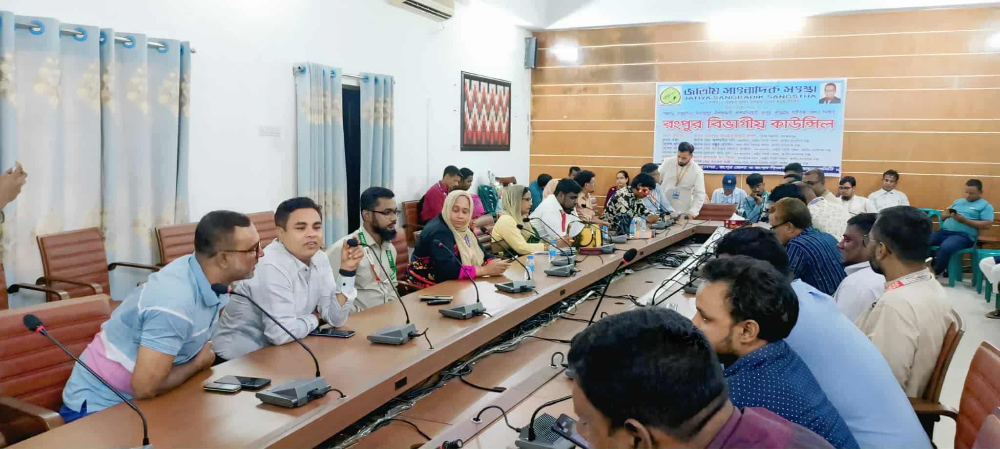 রংপুরে জাতীয় সাংবাদিক সংস্থার উদ্যোগে “রংপুর বিভাগীয় কাউন্সিল” অনুষ্ঠিত হয়েছে। দিনব্যাপী এই কাউন্সিলে রংপুর বিভাগের আটটি জেলার প্রতিনিধিরা অংশগ্রহণ করেন— পঞ্চগড়, ঠাকুরগাঁও, দিনাজপুর, নীলফামারী, লালমনিরহাট, রংপুর, কুড়িগ্রাম ও গাইবান্ধা।