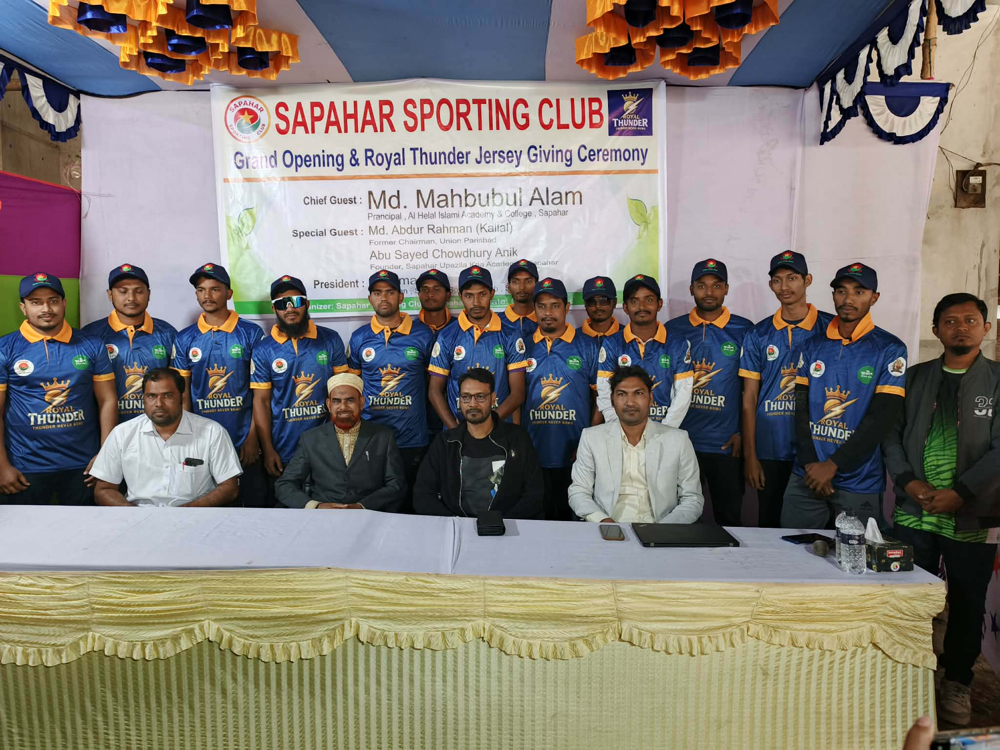 উদ্বোধনী সেশনে ‘রয়্যাল থান্ডার নেভিস সোওস’ দলের খেলোয়াড়দের হাতে নতুন জার্সি তুলে দেওয়া হয়। নতুন জার্সির মাধ্যমে দলটির আনুষ্ঠানিক যাত্রা শুরু হওয়ায় খেলোয়াড়দের মধ্যে দৃশ্যমান উৎসাহ লক্ষ্য করা যায়। বক্তারা বলেন, পরিকল্পিত উদ্যোগে স্থানীয় ক্রিকেটকে এগিয়ে নেওয়া সম্ভব এবং সাপাহার স্পোর্টিং ক্লাবের উদ্যোগে নতুন প্রতিভা আবিষ্কার হবে।
