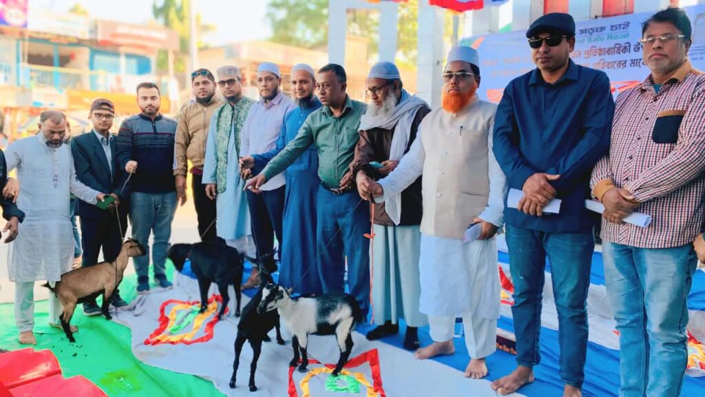 বড়লেখায় নিসচার মানবিক কর্মসূচিতে দুর্ঘটনায় ক্ষতিগ্রস্ত পরিবারে ছাগল বিতরণ