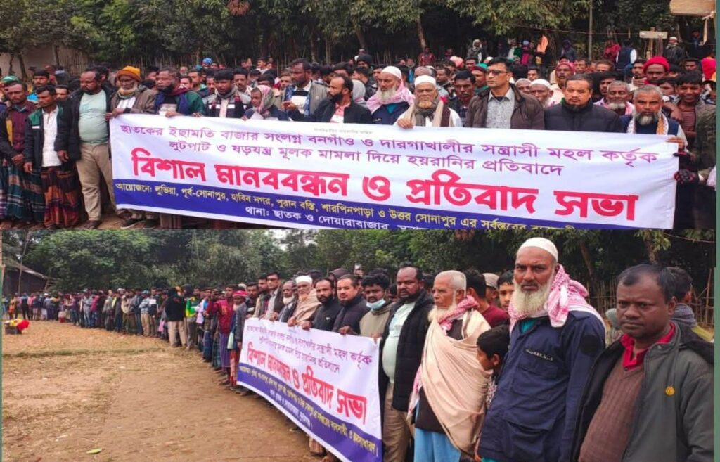 সীমান্ত এলাকা ছাতক-দোয়ারাবাজার: লুটপাট ও মিথ্যা মামলার বিরুদ্ধে গ্রামবাসীর প্রতিবাদ