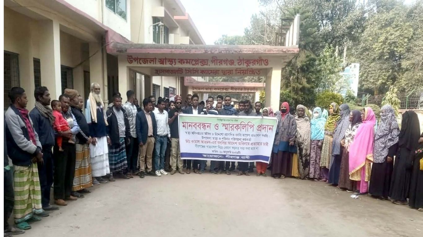 ডাঃ আব্দুল জব্বারের বদলীর ক্ষেত্রে স্বাস্থ্য অধিদপ্তর সীমাহিন অনিয়ম, দূর্নীতি, স্বেচ্ছাচারিতার প্রতিবাদে পীরগঞ্জবাসী মানববন্ধন কমীসূচীর আয়োজন করেন।