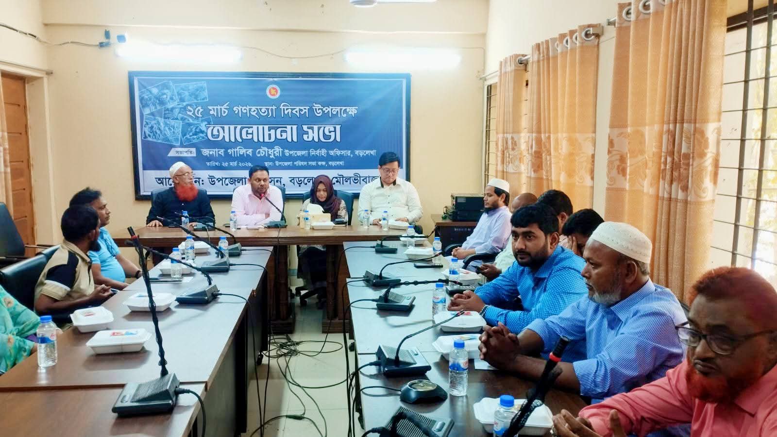 ১৯৭১ সালের ২৫শে মার্চের গণহত্যা দিবস স্মরণে বড়লেখায় আলোচনা সভা অনুষ্ঠিত হয়েছে। বড়লেখা উপজেলা প্রশাসনের উদ্যোগে বুধবার (২৫ মার্চ) এ সভা আয়োজন করা হয়।
