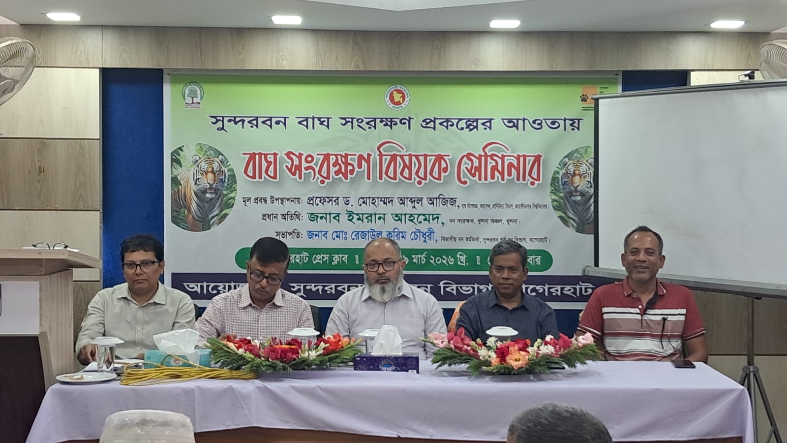 বাগেরহাটে বাঘ সংরক্ষণ সেমিনার অনুষ্ঠিত হয়েছে। সুন্দরবনে বাঘ রক্ষায় সচেতনতা বৃদ্ধি ও সম্মিলিত উদ্যোগ জোরদারের লক্ষ্যে এই বাঘ সংরক্ষণ সেমিনার আয়োজন করা হয়।