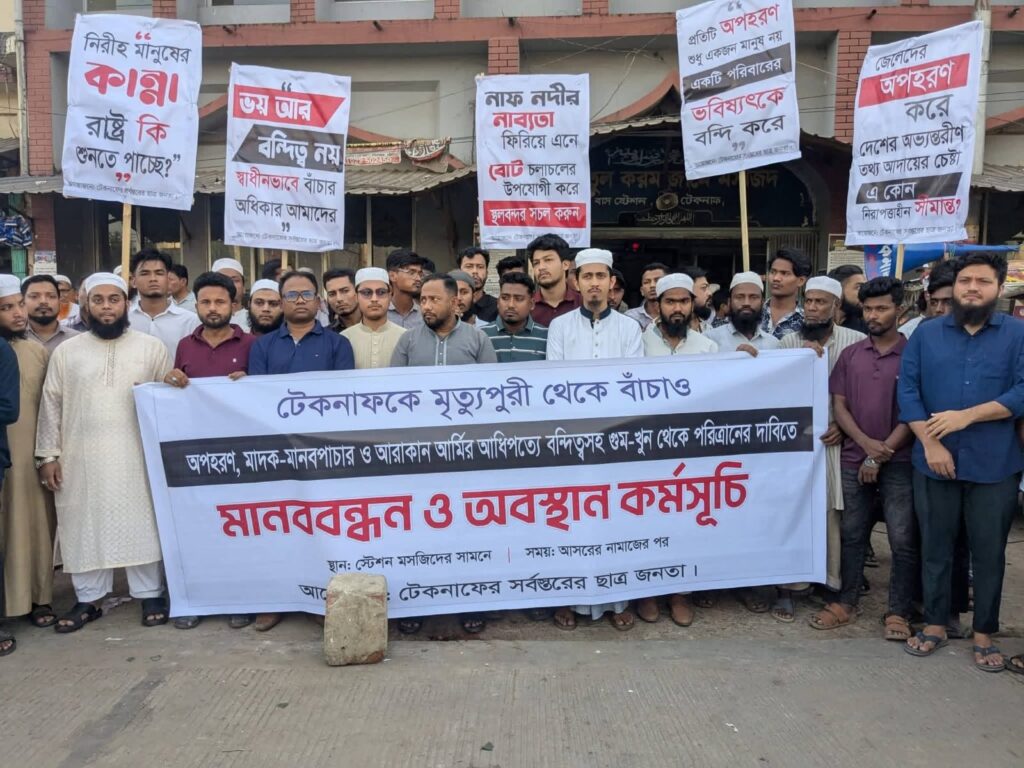 বক্তারা আরও বলেন, সীমান্ত এলাকায় মিয়ানমারের আরাকান আর্মির সক্রিয়তা নতুন করে উদ্বেগ সৃষ্টি করেছে। টেকনাফ অপরাধ পরিস্থিতির অন্যতম কারণ হিসেবে তারা এই সশস্ত্র গোষ্ঠীর প্রভাবকে দায়ী করেন। জেলেদের অপহরণ, মুক্তিপণ দাবি এবং সীমান্তে অনুপ্রবেশের ঘটনা বেড়ে যাওয়ায় স্থানীয়দের জীবিকা ও নিরাপত্তা দুটোই হুমকির মুখে পড়েছে। এতে করে টেকনাফের সামগ্রিক পরিস্থিতি আরও অস্থির হয়ে উঠছে।