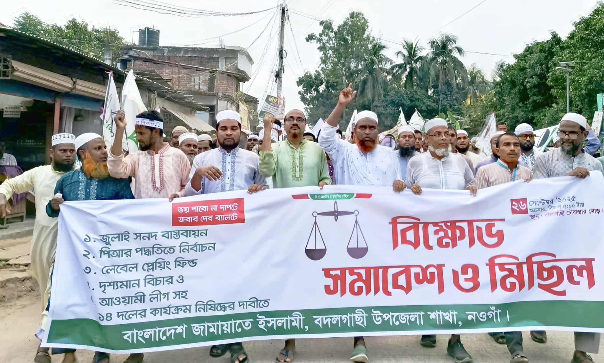 জুলাই সনদের ভিত্তিতে আগামী ফেব্রুয়ারিতে জাতীয় নির্বাচনসহ পাঁচ দফা দাবি বাস্তবায়নের দাবিতে বিক্ষোভ সমাবেশ ও মিছিল করেছে বাংলাদেশ জামায়াতে ইসলামী নওগাঁ জেলার বদলগাছী উপজেলা শাখা।